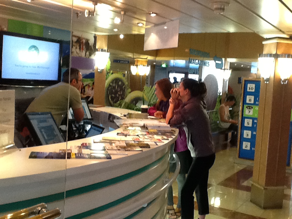 Not the best pictures, but hopefully, you get the idea that this is not an ordinary ferry....bars, restaurants, movies, sports bars.....and we paid a nominal extra fee....to get a comfortable seat....we didn't know that included full breakfast, midmorning snacks of bagels, croissants, etc. and unlimited soft, energy, sugared, coffee, tea, AND alcoholic drinks.....we will be better prepared next time...